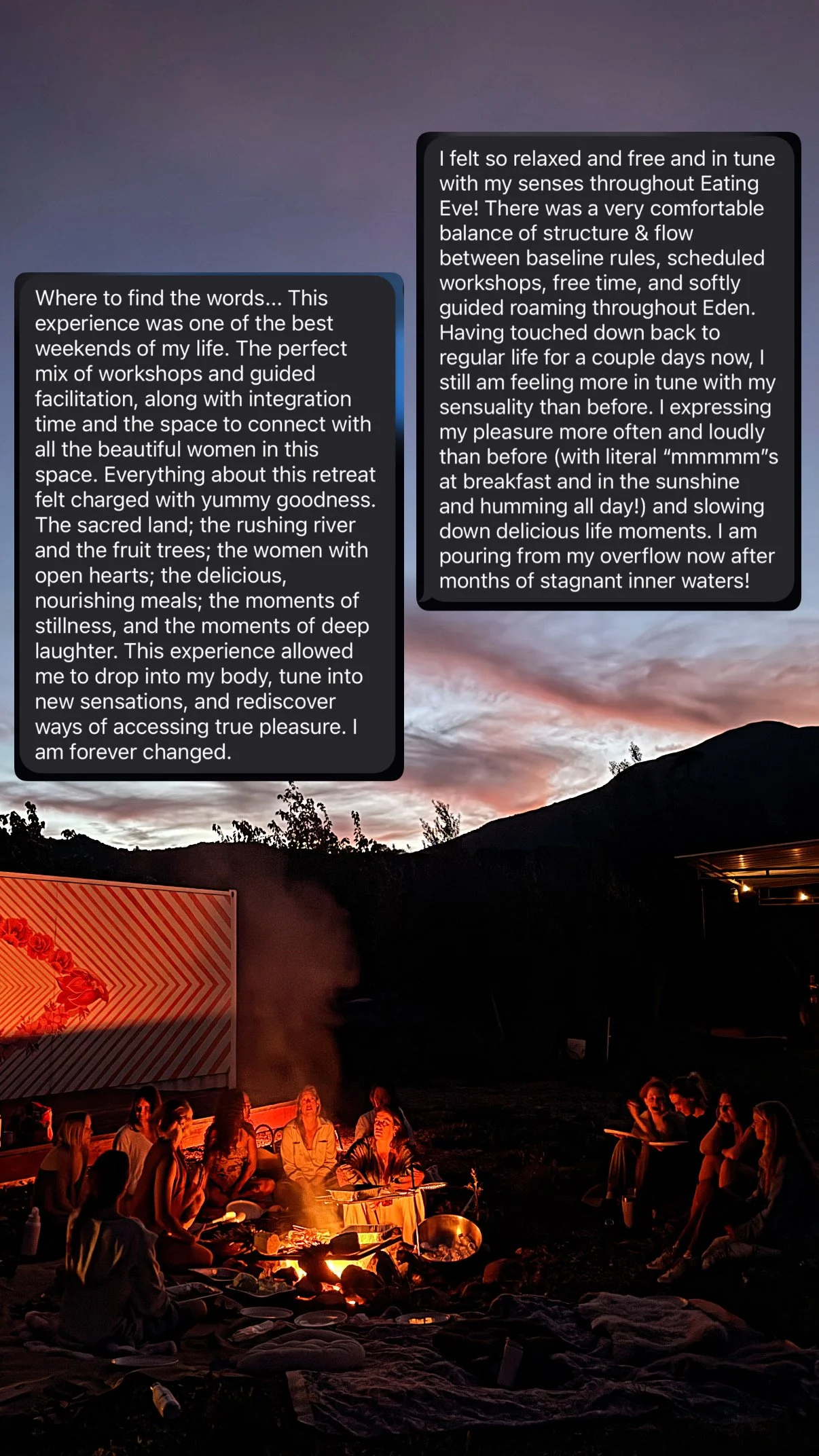 I offer retreats 2-3 times per year. Please reach out if you’d like to hire me to facilitate at or collaborate with you on an upcoming retreat.